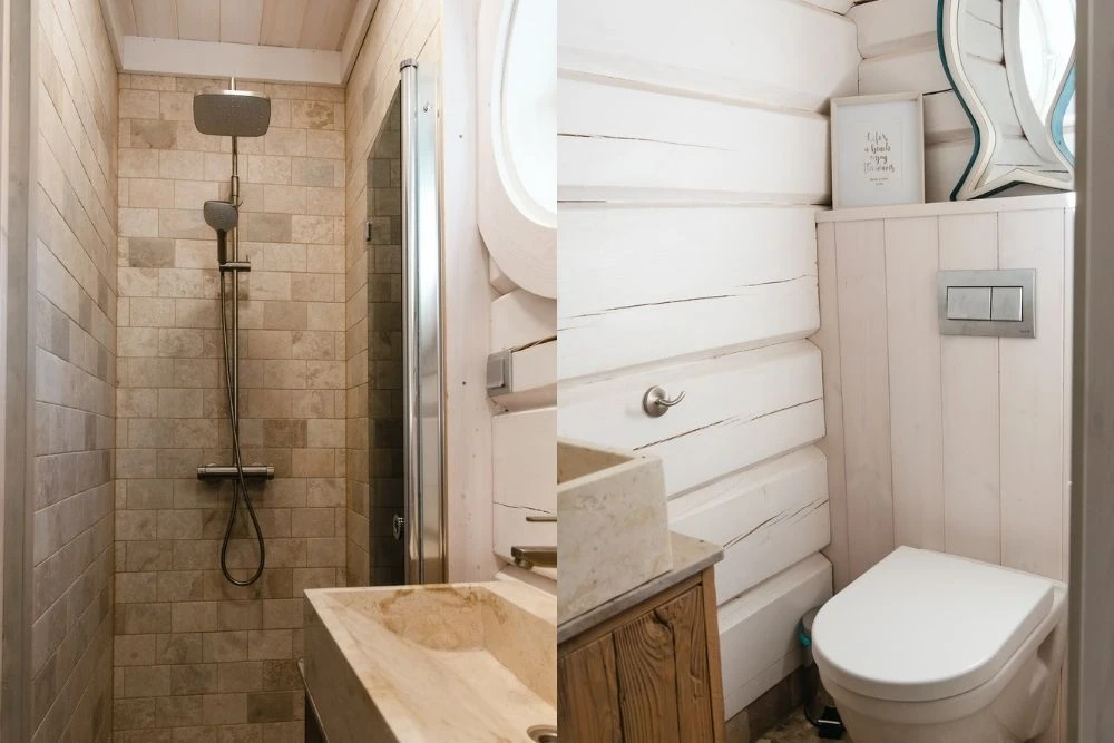 Maja neli magamistuba on erinimelised: vesi, tuli, maa ja õhk. Nimetatud ja kujundatud looduse nelja elemendi järgi. Igas toas on dušš ja WC ning kaks voodit, mis on kasutatavad nii kahe- kui üheinimese vooditena (V.a invatoas õhk, kus on voodid kasutatavad ainult kahe eraldi voodina. Üks voodi on statsionaalne ja teine lahtitehtav.). Kokku on magamistubades 8 voodikohta. Majutuse hinnas on voodipesud, rätikud.